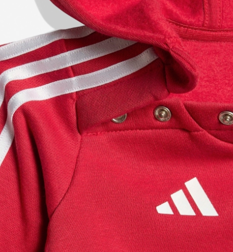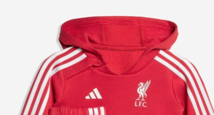This LFC adidas Kids 25/26 DNA Tracksuit Red proudly displays a pair of club badges, so they can show their support for Liverpool FC from a young age. Soft fleece fabric will keep them cosy through every kick and crawl.