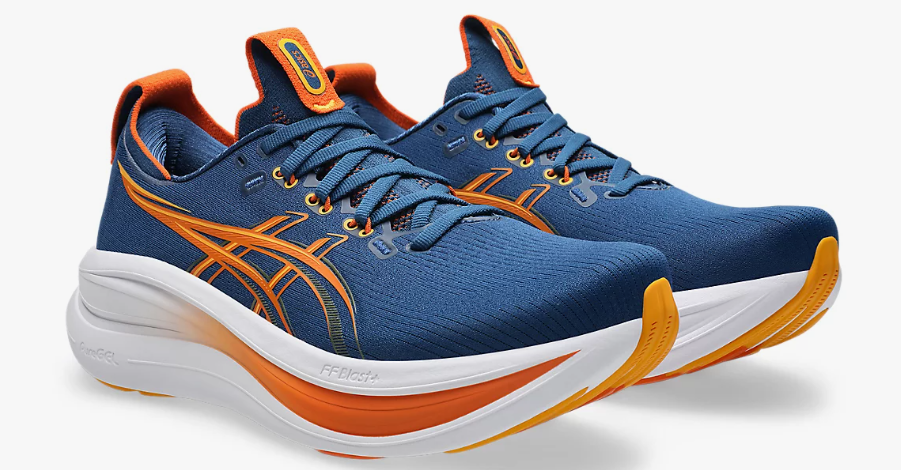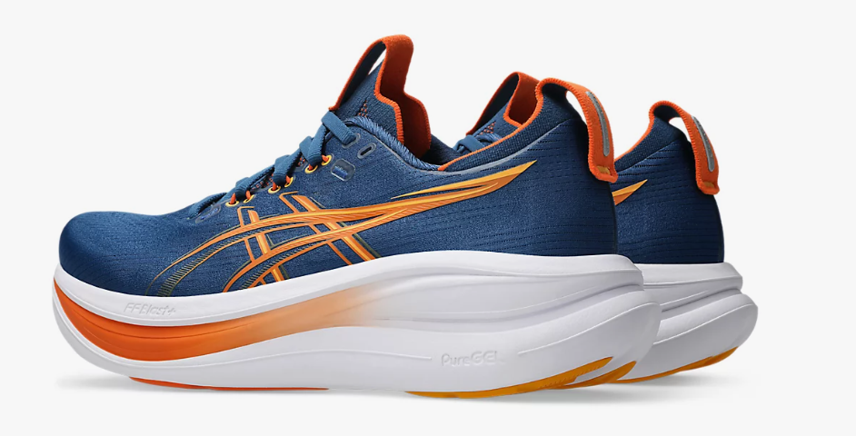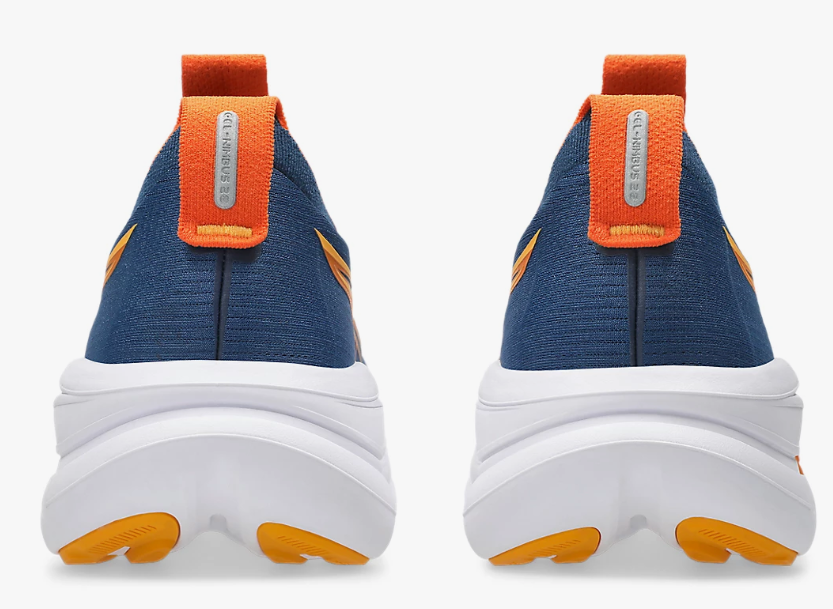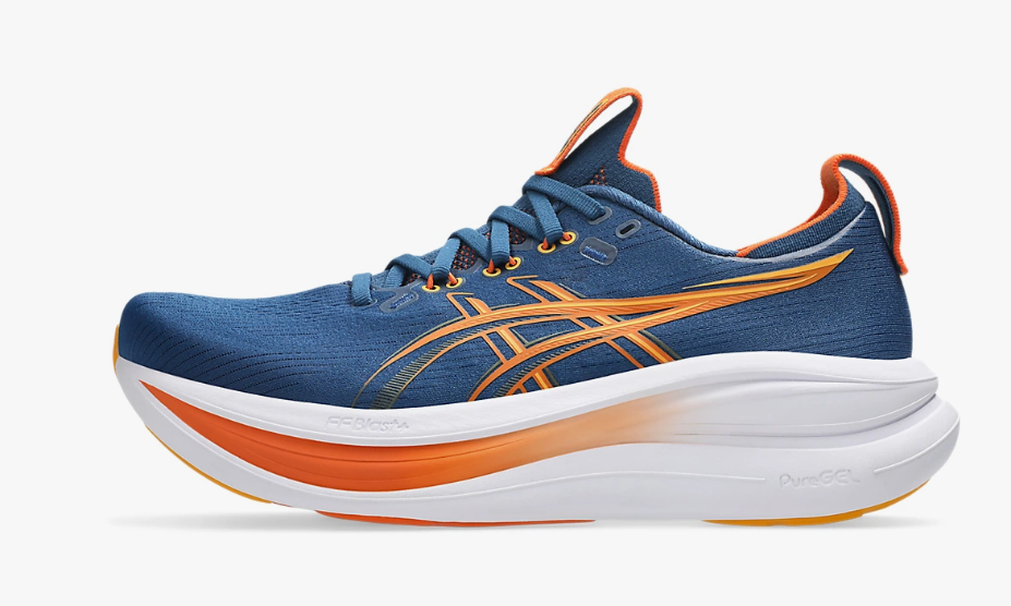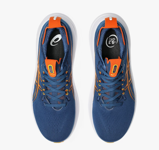 The GEL-NIMBUS 28 shoe is one of tThe midsole features a combination of FF BLAST PLUS cushioning and PureGEL technology. These components help create a lightweight and soft cushioning experience that feels like you’re landing on clouds.