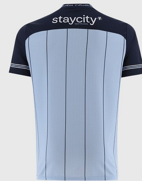 Discover the O’Neills Dublin GAA Home Jersey 2026. Featuring a classic pinstripe design and crafted from premium jacquard jersey fabric, it delivers the perfect balance of tradition and modern performance. Infused with catch, move and release nanotechnology, this jersey works to transport moisture away from the skin, keeping you dry and comfortable as you cheer on Dublin GAA. The subtle raised flash pattern adds a contemporary edge, while the knitted ribbed collar provides a timeless finish. On the back of the collar, the proud inscription “Áth Cliath” pays homage to Dublin’s heritage, making this jersey a must-have for Dublin GAA supporters.