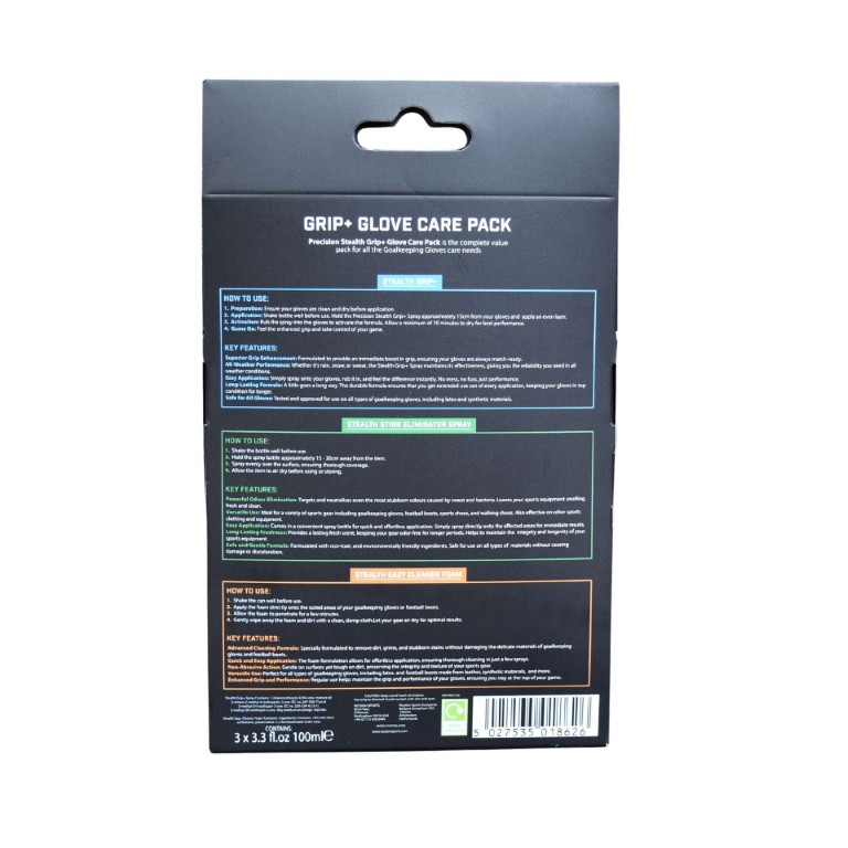 Precision Stealth Grip+ Glove Care Pack is the complete value pack for all the Goalkeeping Gloves care needs.