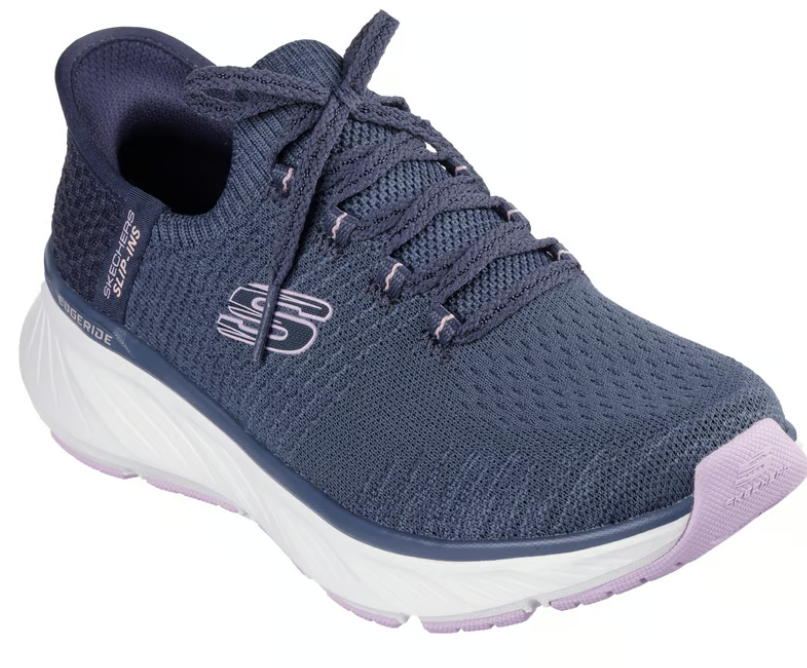 Enjoy well-cushioned performance while minding your footprint wearing Skechers Hands Free Slip-ins® Relaxed Fit®: Edgeride – Impression. Designed with recycled materials, this vegan athletic style features a stretch knit upper with fixed stretch laces, a well-cushioned midsole, and a Skechers Air-Cooled Memory Foam® insole. Our Planet Matters®: Good for your feet. Good for the world.®