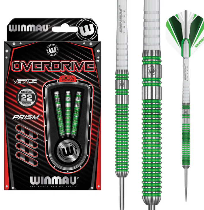 Winmau Overdrive 90% Tungsten Dart Silver/Green